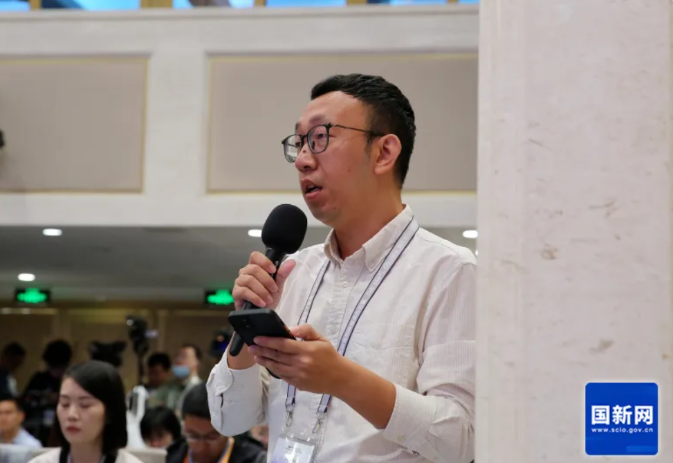 美国国际市场新闻社记者提问(赵一帆 摄)